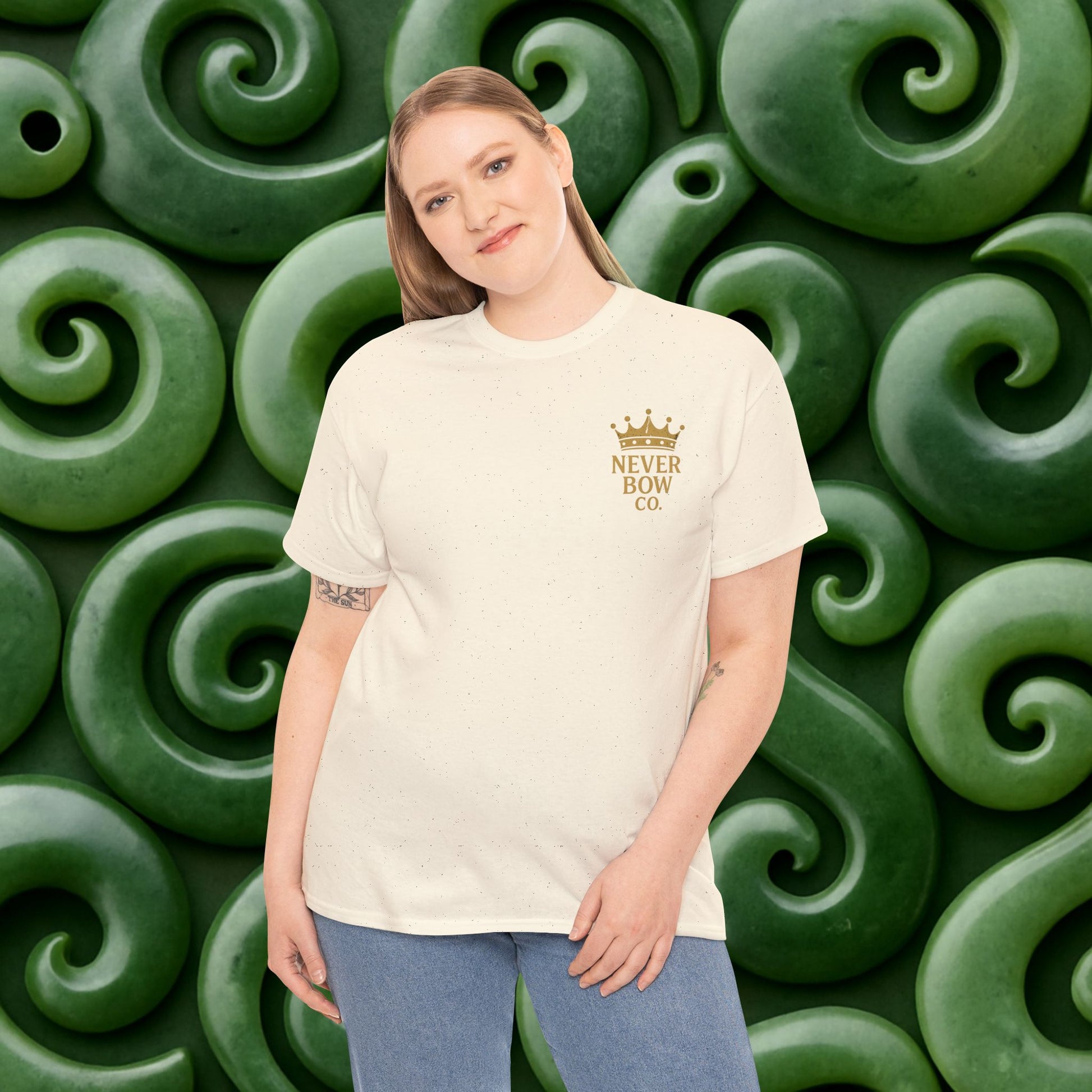 This bold Never Bow Co graphic tee features the iconic rabbit design with the words: