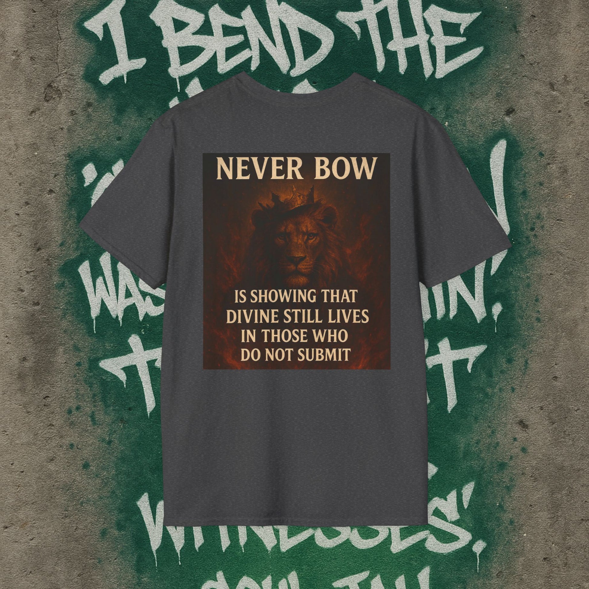 Never Bow Co “Divine Still Lives” | Bold Truth Streetwear. A fearless declaration: “Divine still lives in those who don’t submit.” Heavy cotton, lion-strength style. Built for warriors who resist control and wear their defiance as truth on the streets.