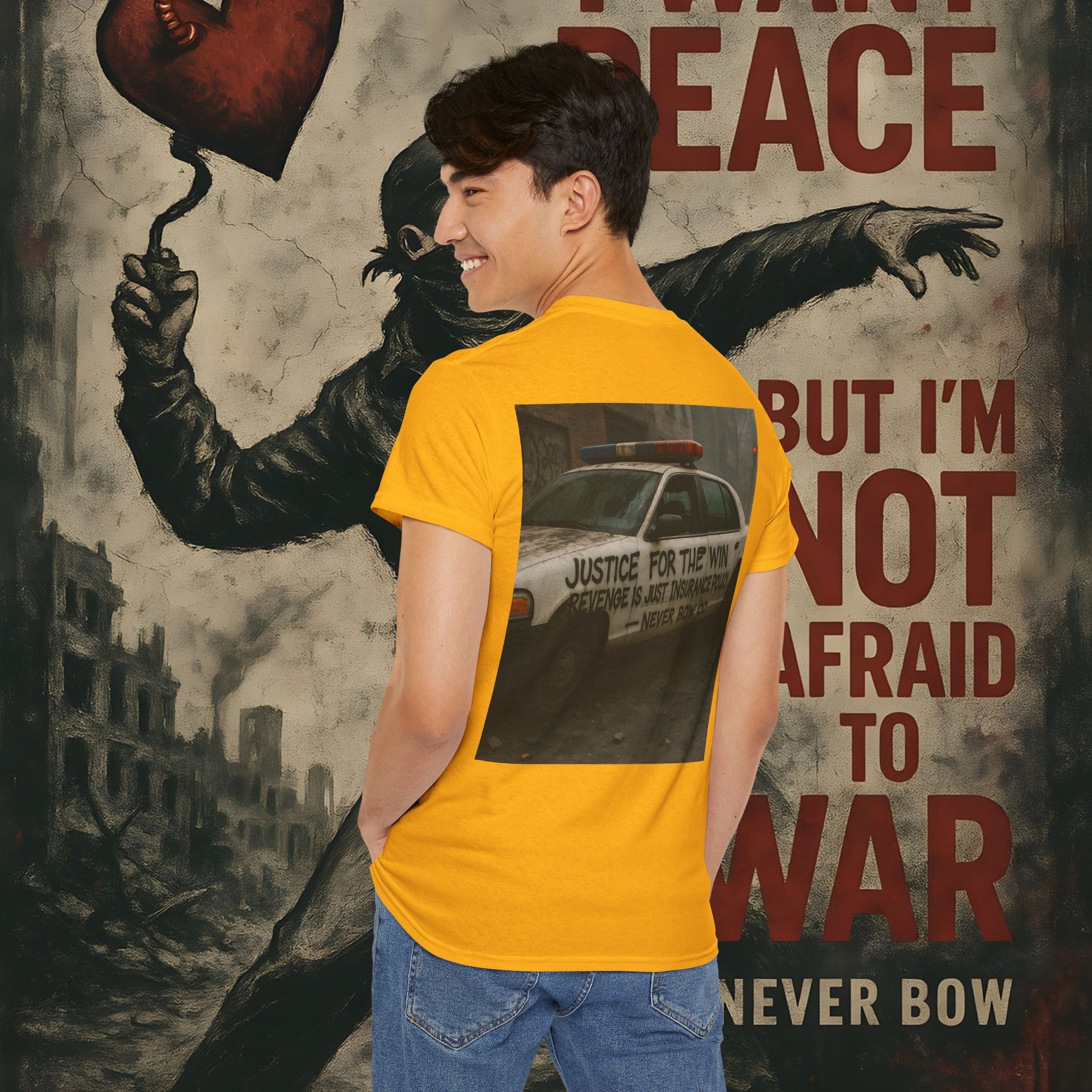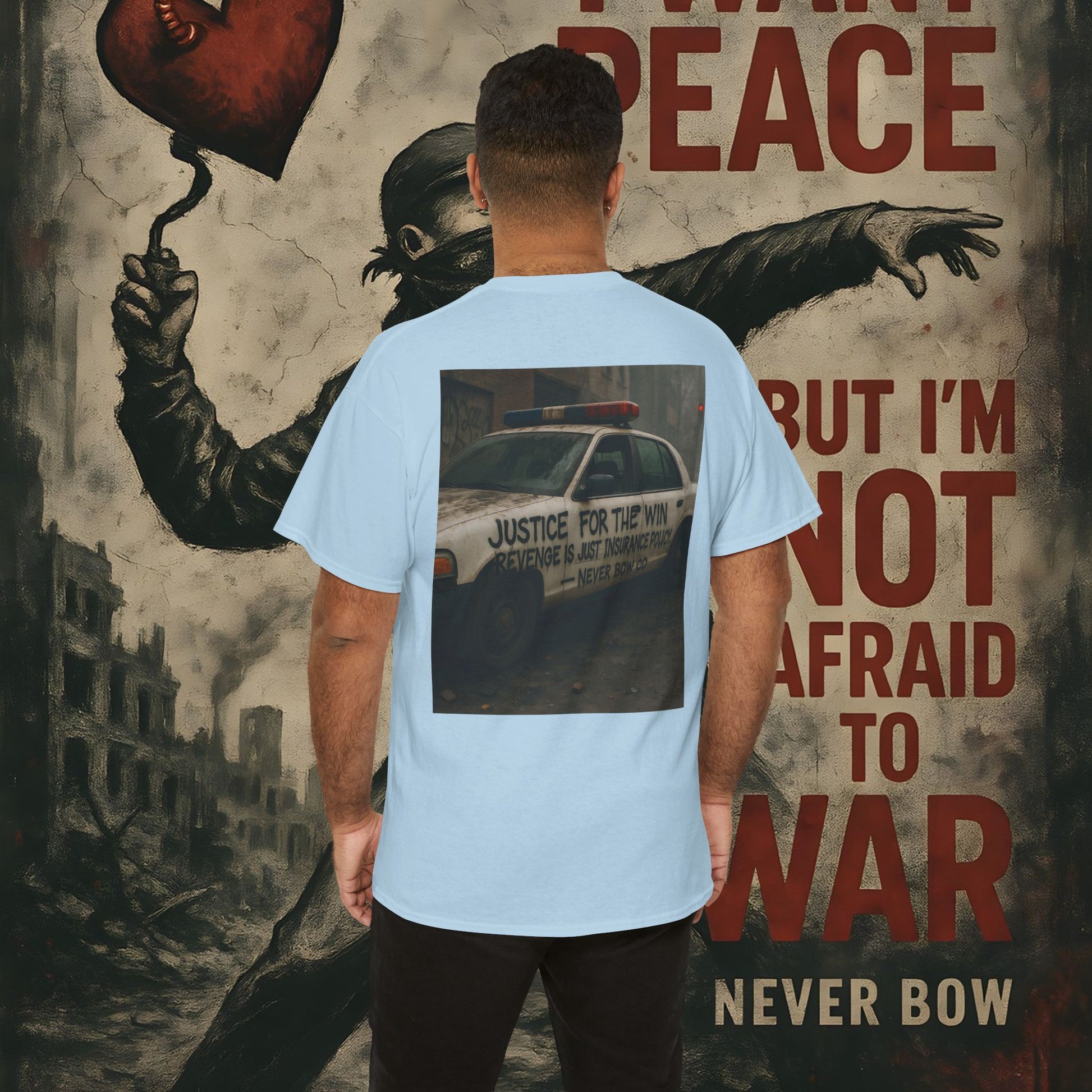 Justice doesn’t whisper. It roars. This Never Bow Co tee carries the powerful “Justice for the Truth” graphic, set against the backdrop of a police car — a reminder of the fight against corruption, silence, and systemic abuse.